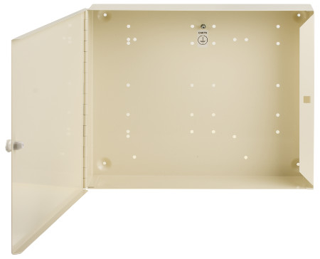 The dome-shaped feet have mounting screw holes, suitable for wall or shelf-mount applications. The Loop Responder Case is made from 0.8 mm steel, finished in off-white powder-coat. The product code is unchanged: F100LRC.